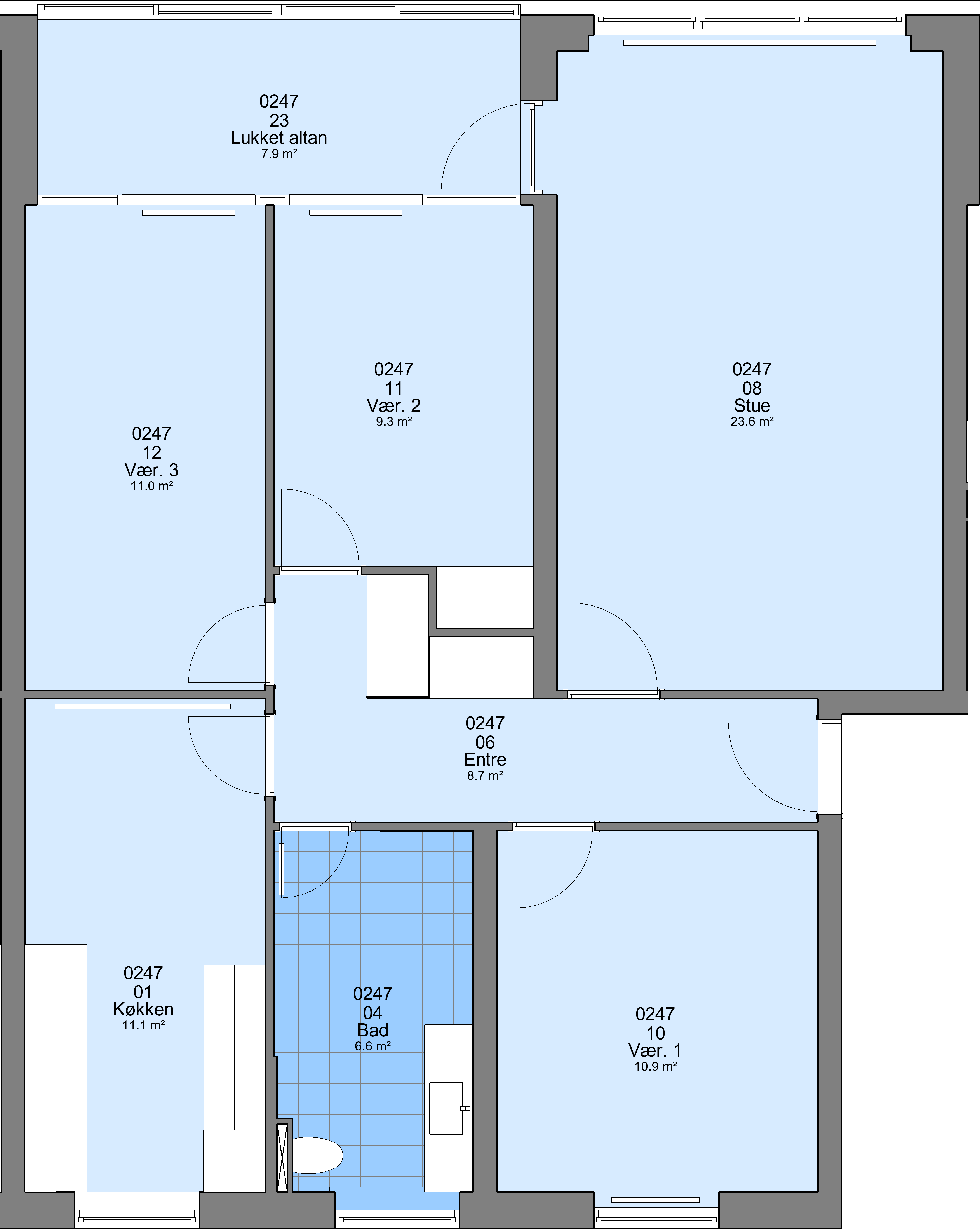 Der er et kælderrum til alle boliger.