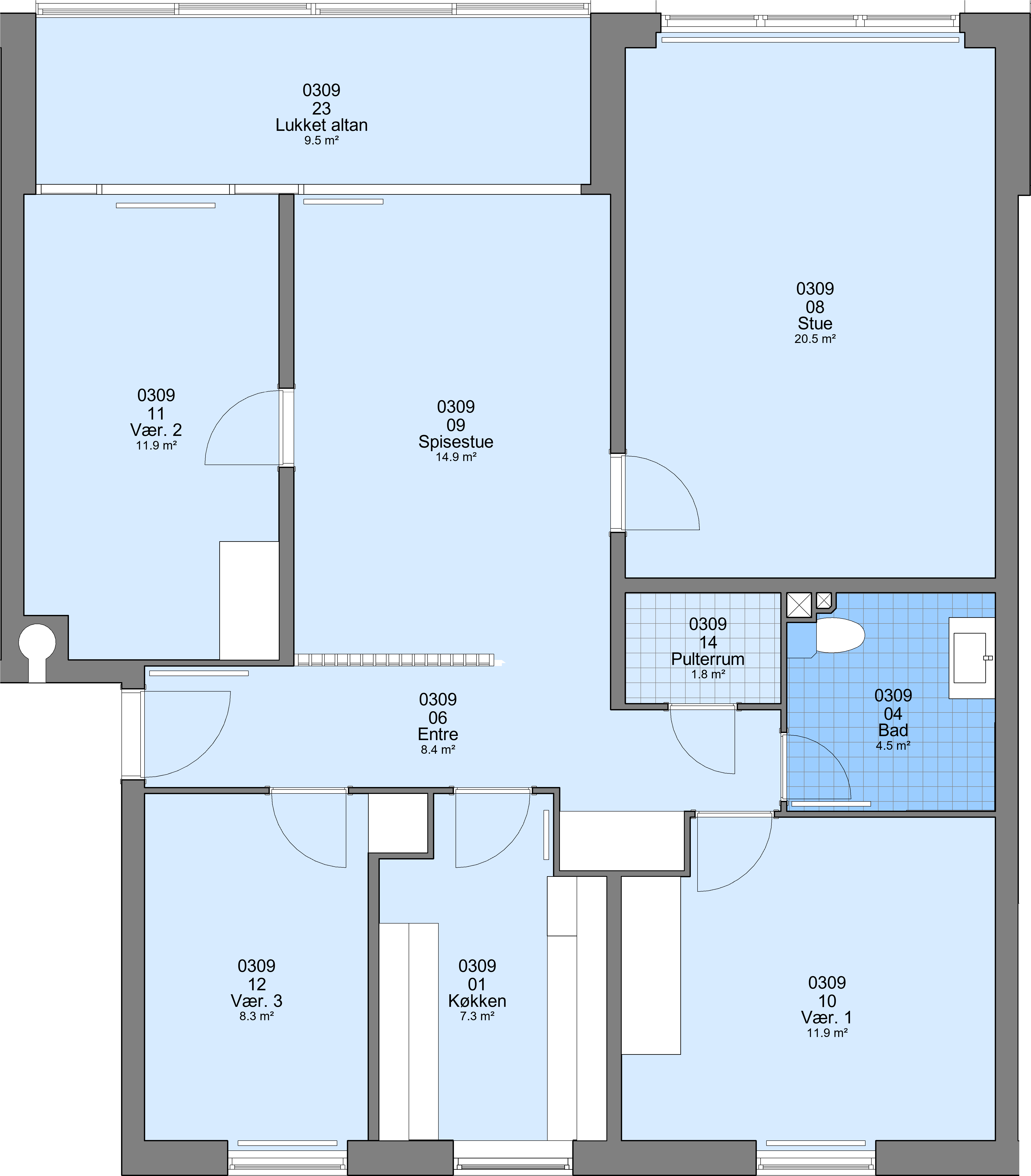 Der hører køle-/fryseskab, komfur, ovn og emhætte med til lejligheden.