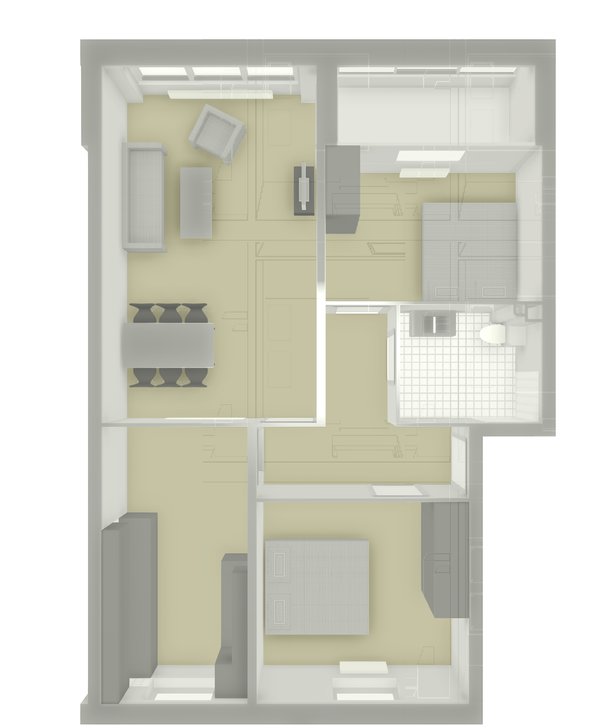 Der hører køle-/fryseskab, komfur, ovn og emhætte med til lejligheden.