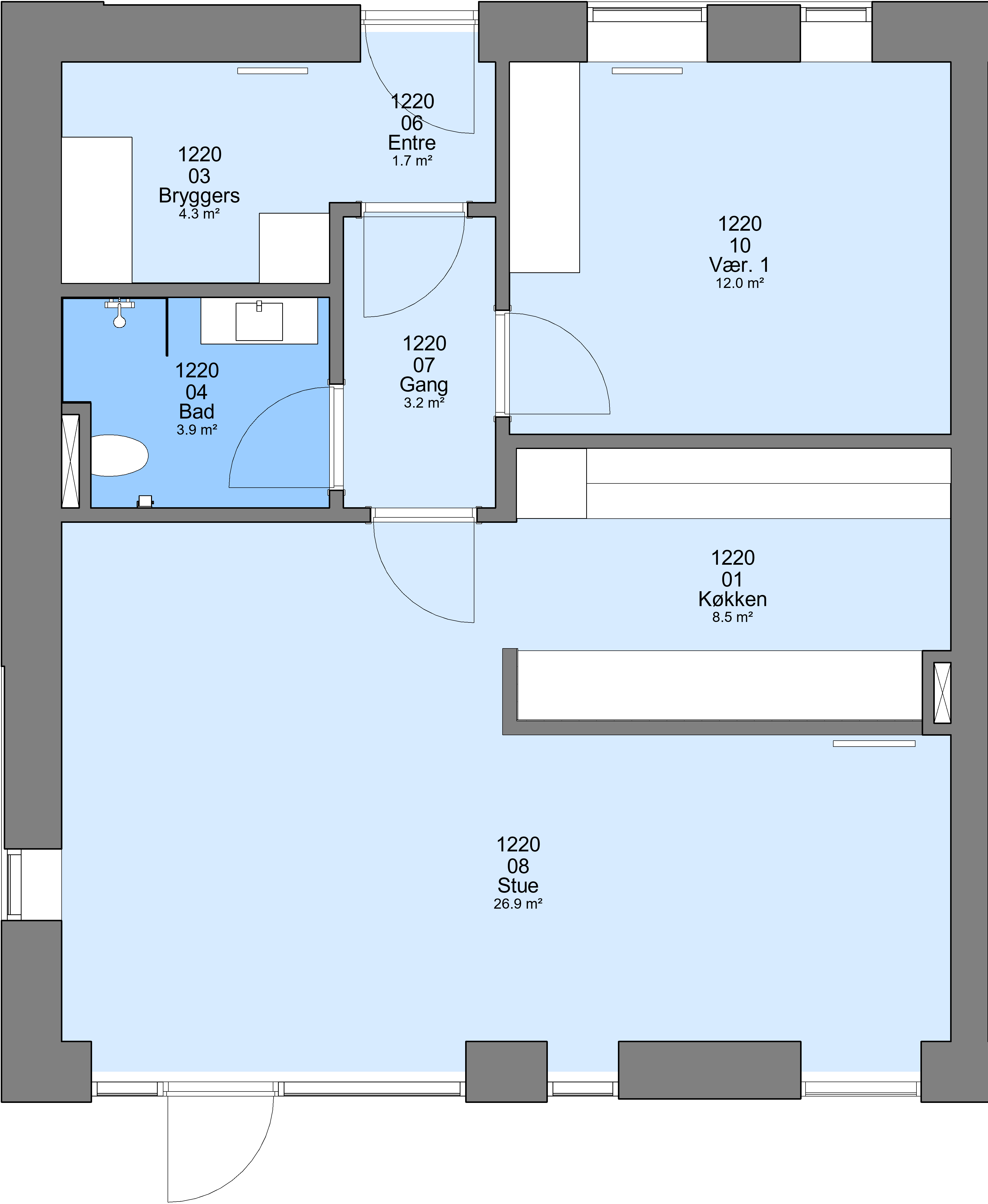 Boligerne med 3 og 4 rum er i to plan. Halvdelen af boligerne med 2 rum, har indgang på 1. sal.