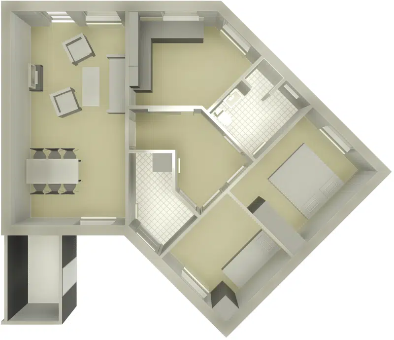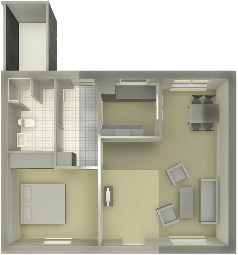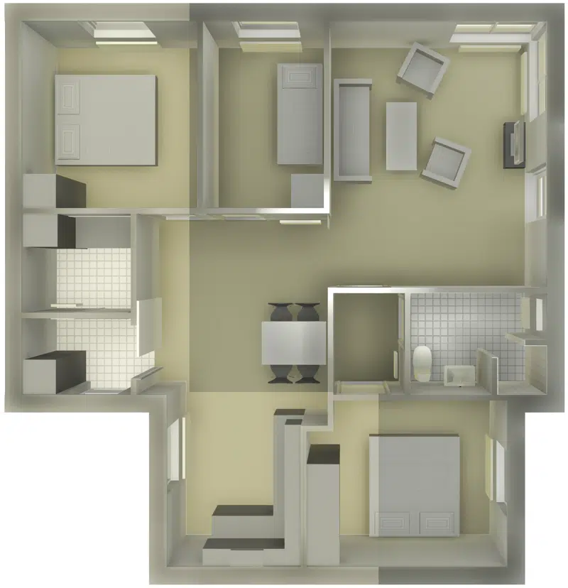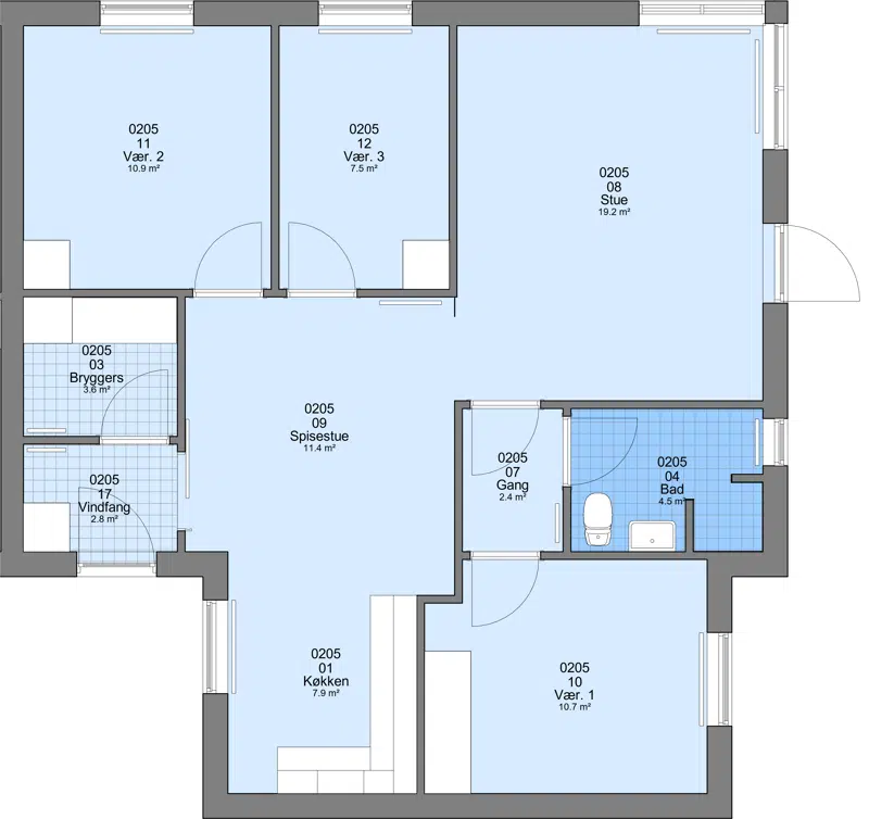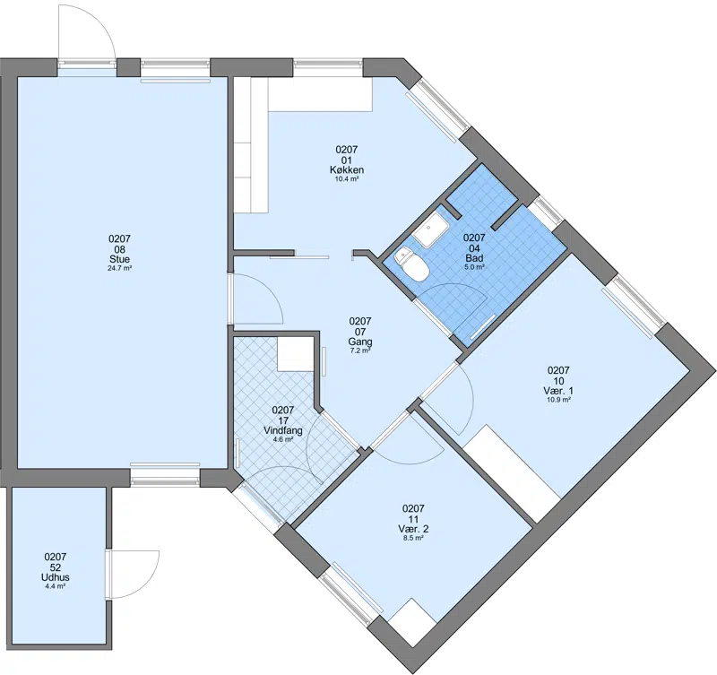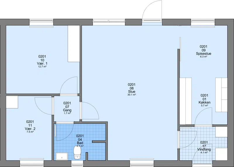 Der er dørtrin i boligerne og der kan forekomme niveauforskelle ved indgangen.