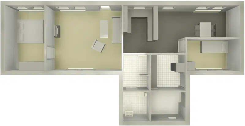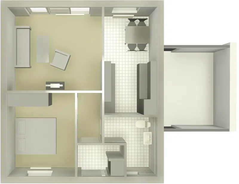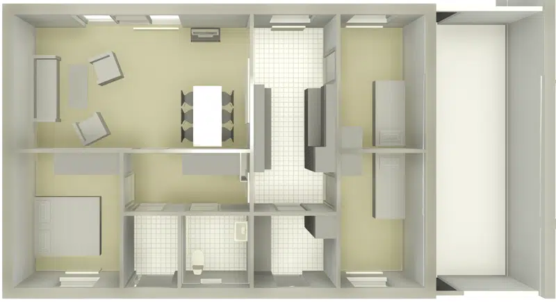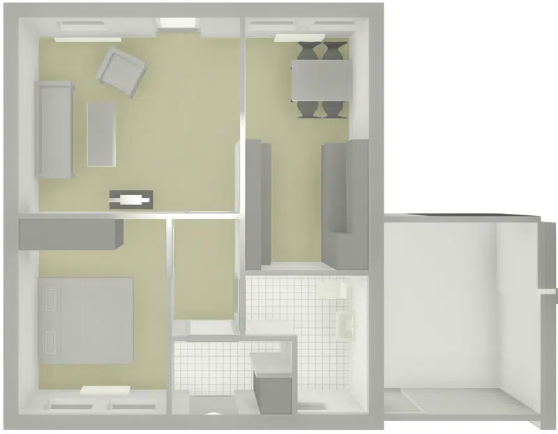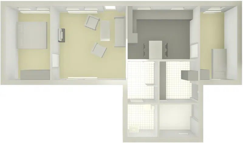 Der hører komfur, ovn og emhætte med til lejligheden. Desuden er der køle-/fryseskab i nr. 1-40. I ungdomsboligerne er der kogeplader, emhætte og et lille køleskab med en frostboks.