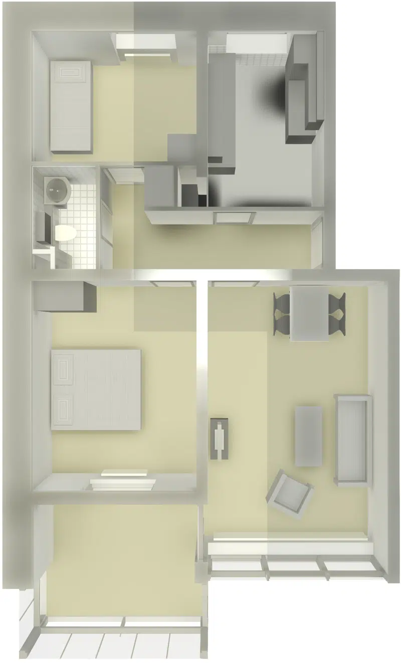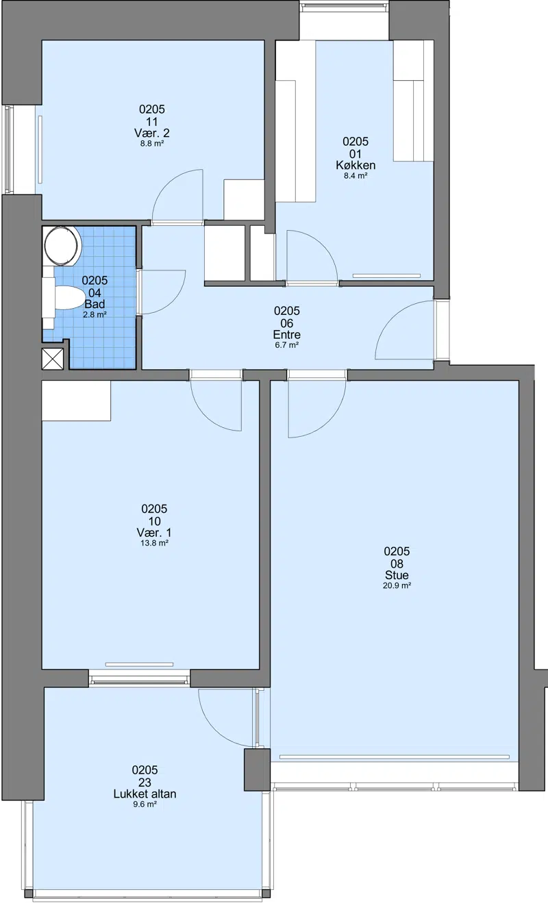 Der er altan til alle boliger, undtagen 1 rums boligerne.