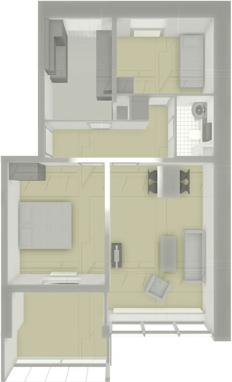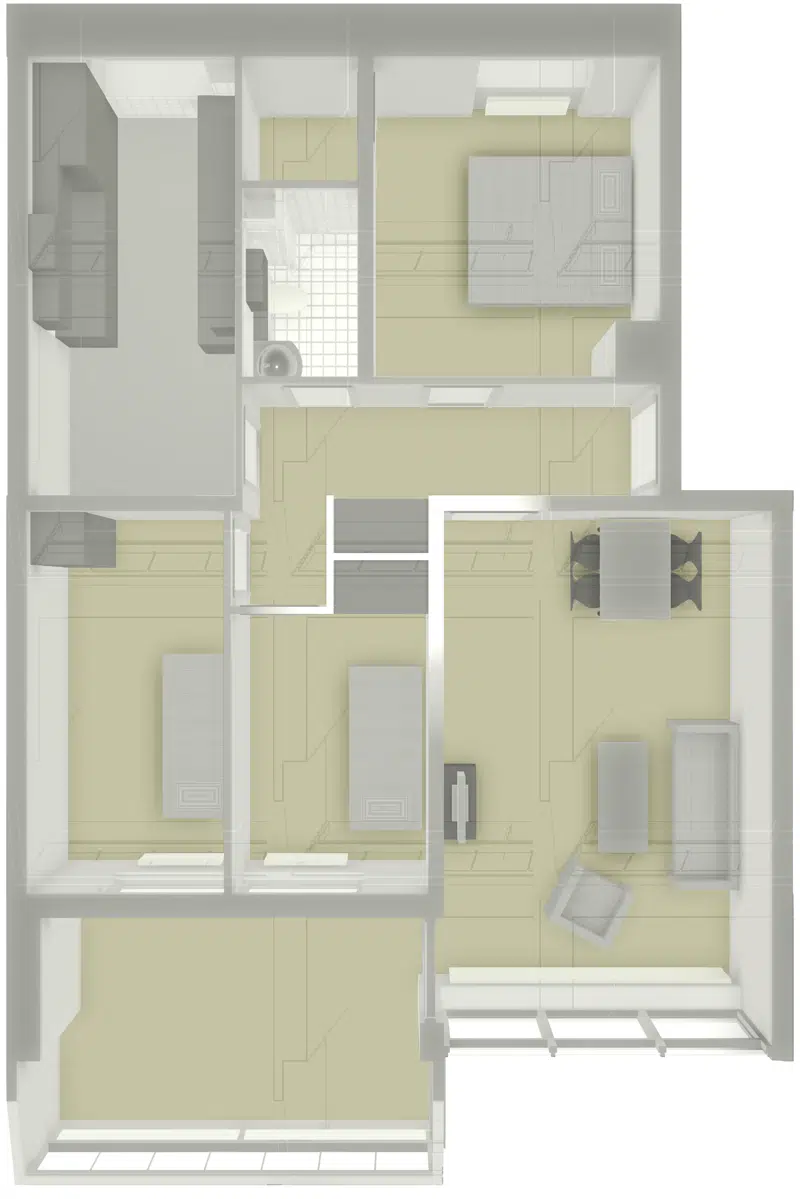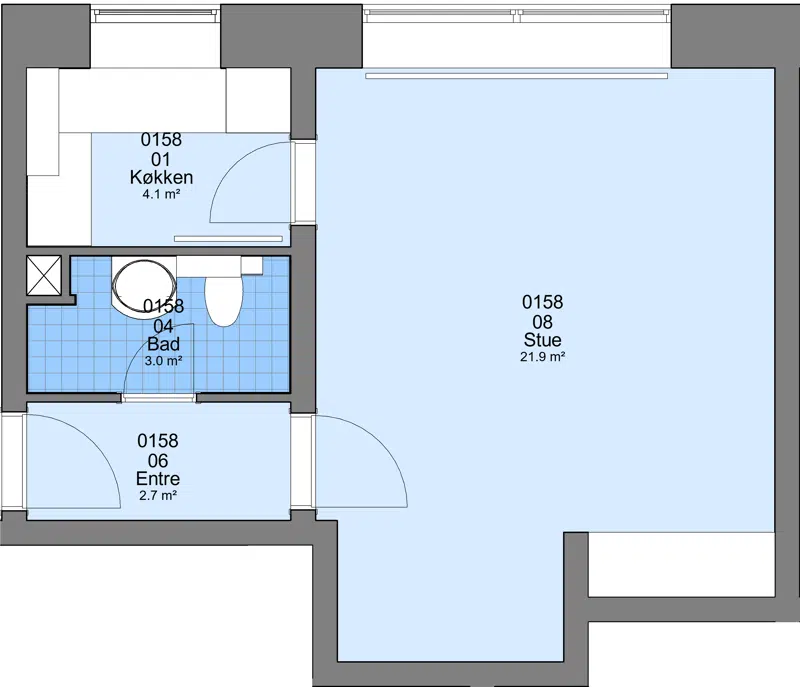 Der hører køle-/fryseskab, komfur, ovn og emhætte med til lejligheden.