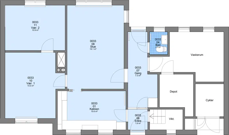 Der er skur, depotrum og vaskerum til boligerne.