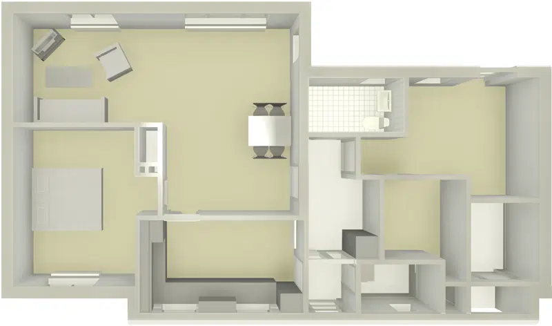 Der er dørtrin i boligerne og der kan forekomme niveauforskelle til enkelte rum.