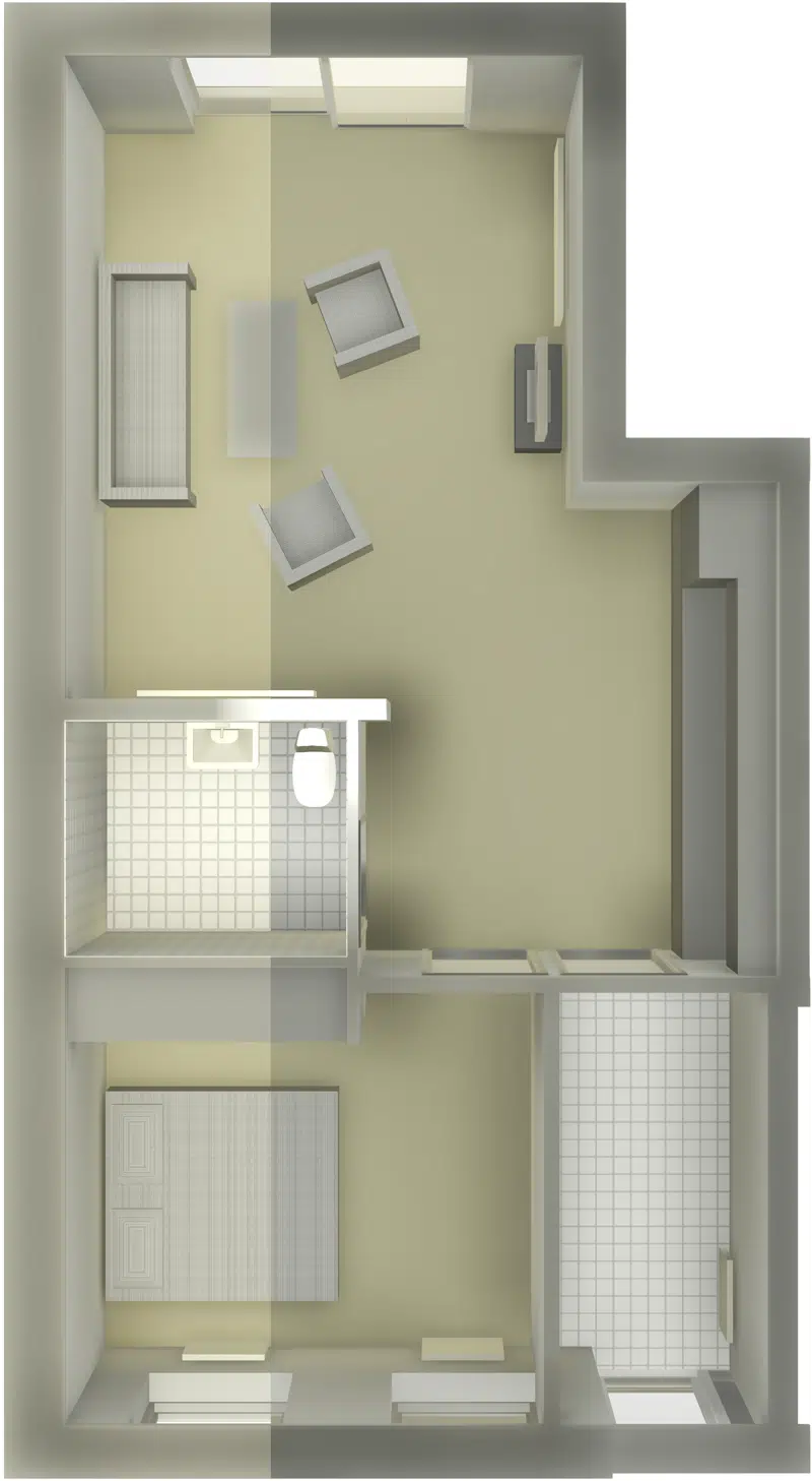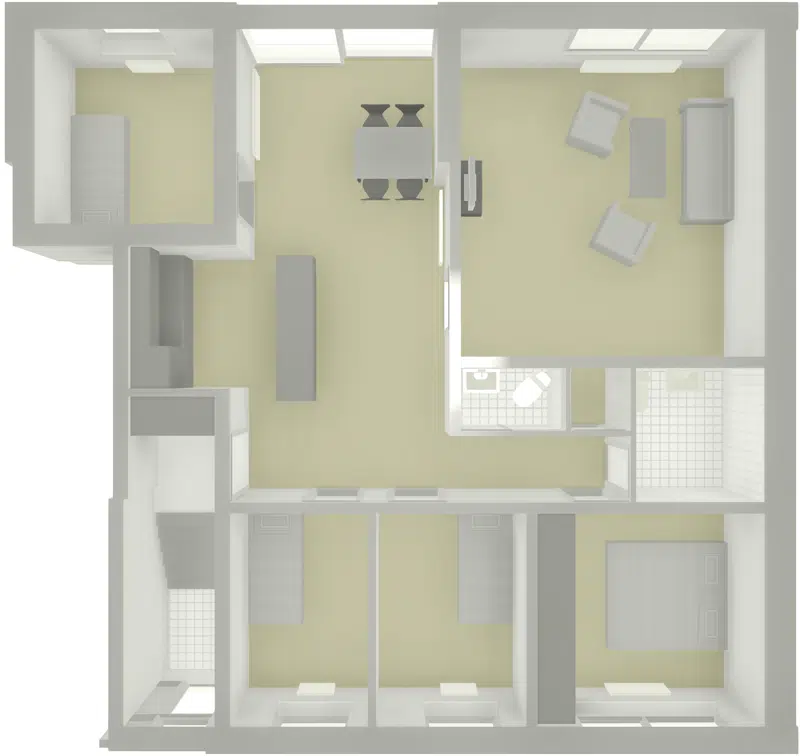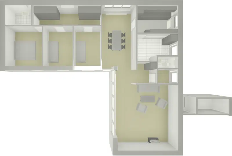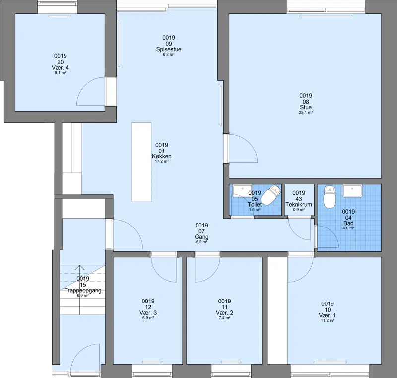 Der er dørtrin i boligerne og der kan forekomme niveauforskelle ved indgangen.
