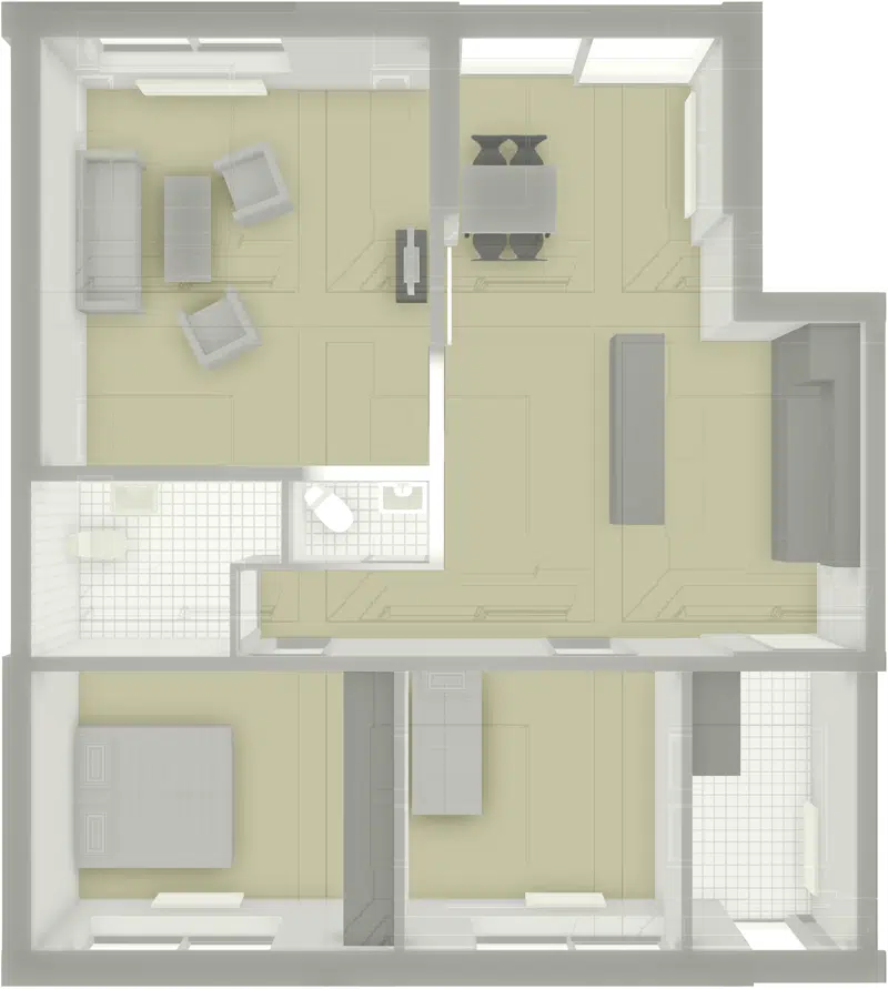 Der hører køle-/fryseskab, komfur, ovn og emhætte med til lejligheden.