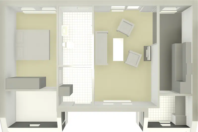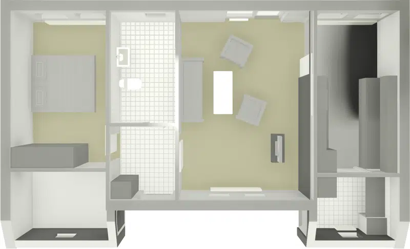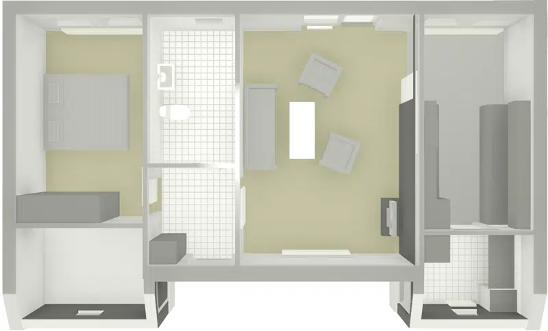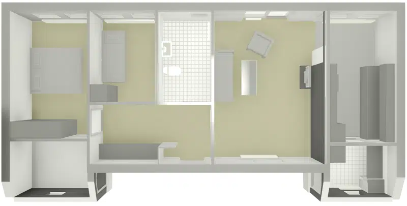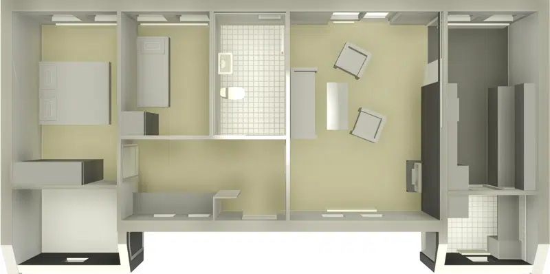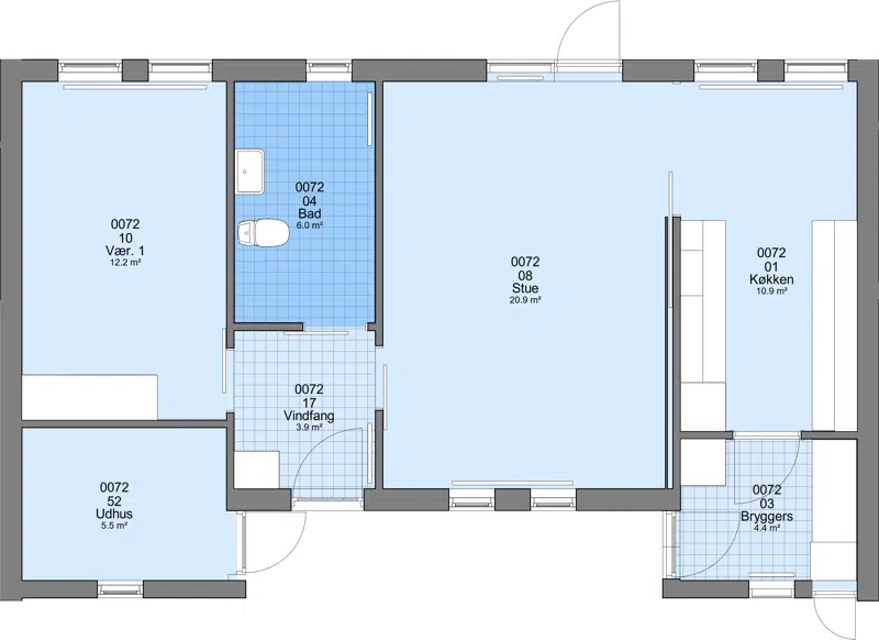 Der er dørtrin i boligerne og der kan forekomme niveauforskelle ved indgangen.