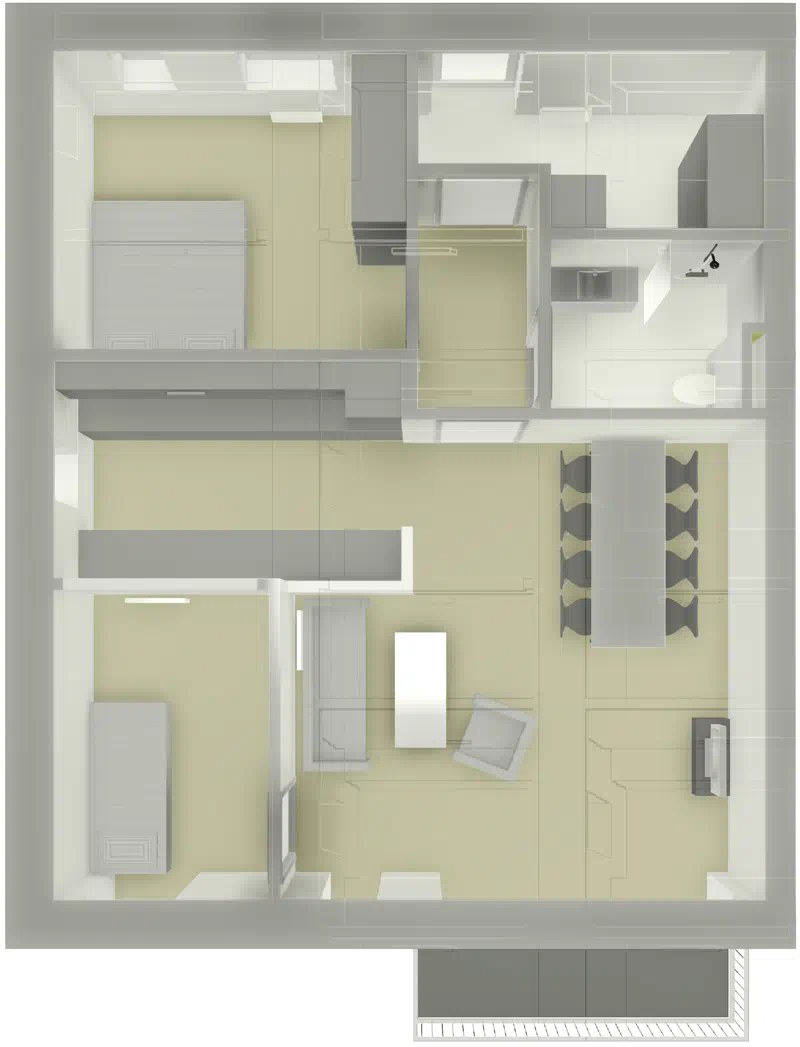 Boligerne med 3 og 4 rum er i to plan. Halvdelen af boligerne med 2 rum, har indgang på 1. sal.