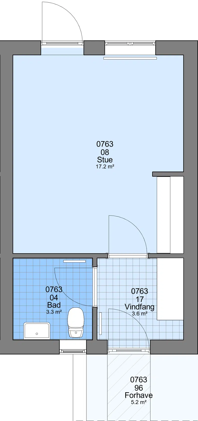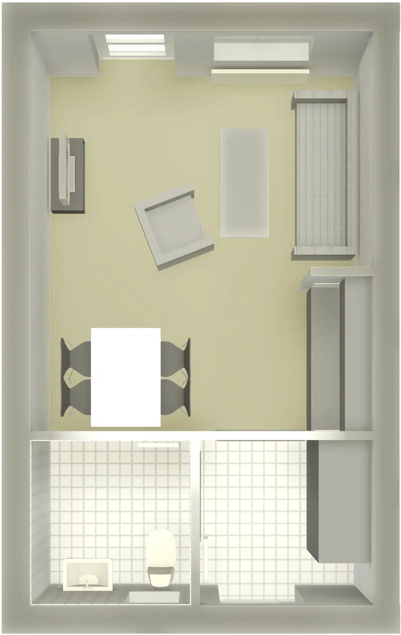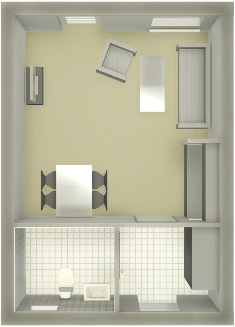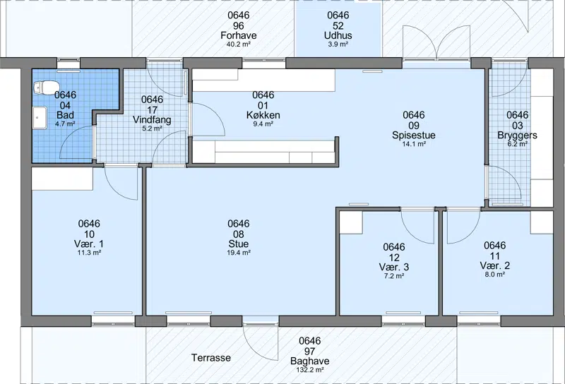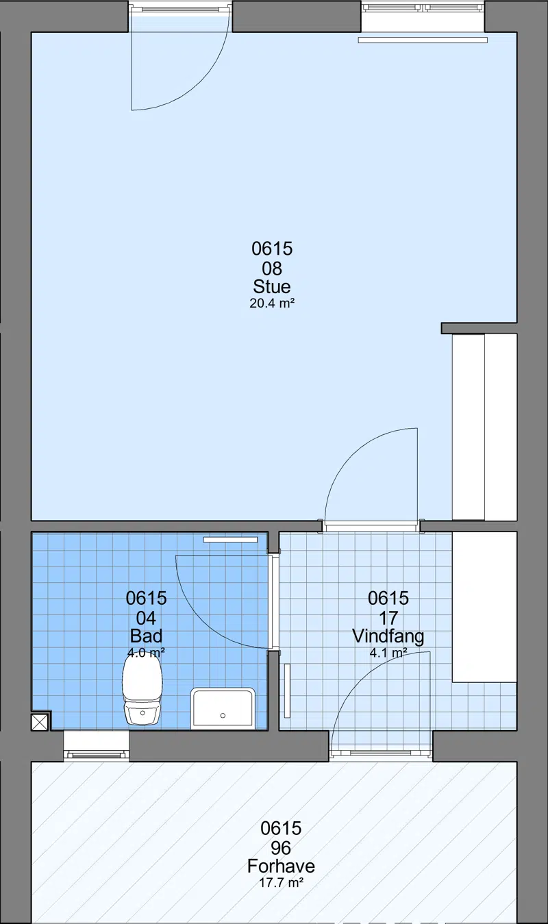 Der hører komfur, ovn og emhætte med til lejligheden. I ungdomsboligerne er der kogeplader, emhætte og et køleskab med en lille frostboks.