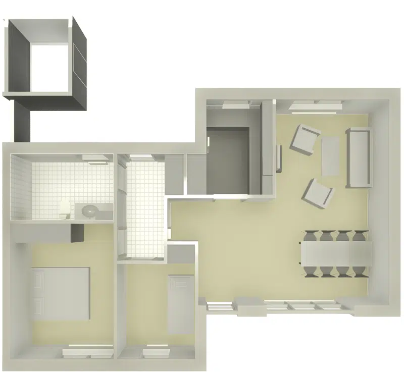Der hører køle-/fryseskab, komfur, ovn og emhætte med til lejligheden.