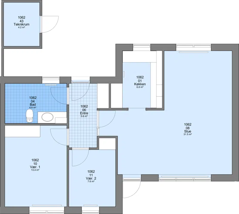 Der er dørtrin i boligerne og der kan forekomme niveauforskelle ved indgangen.