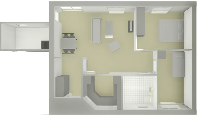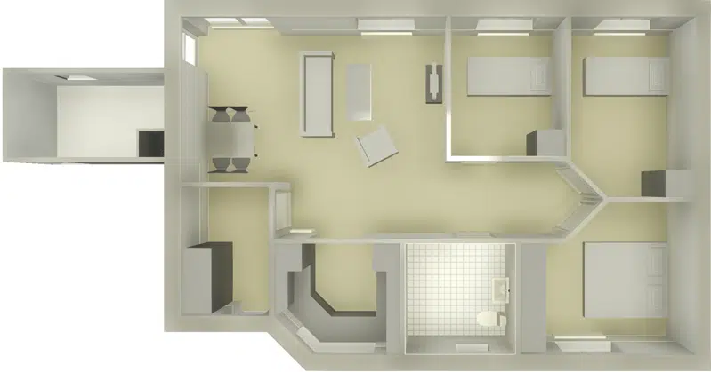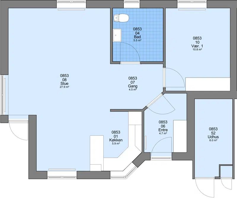 Der er dørtrin i boligerne og der kan forekomme niveauforskelle ved indgangen.
