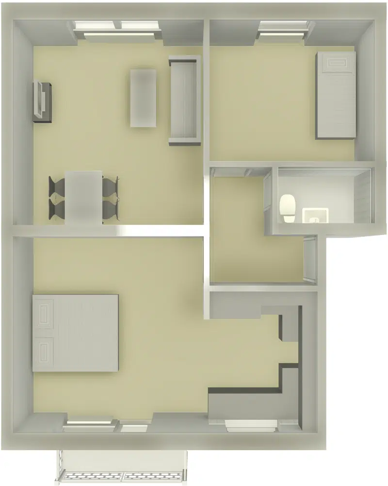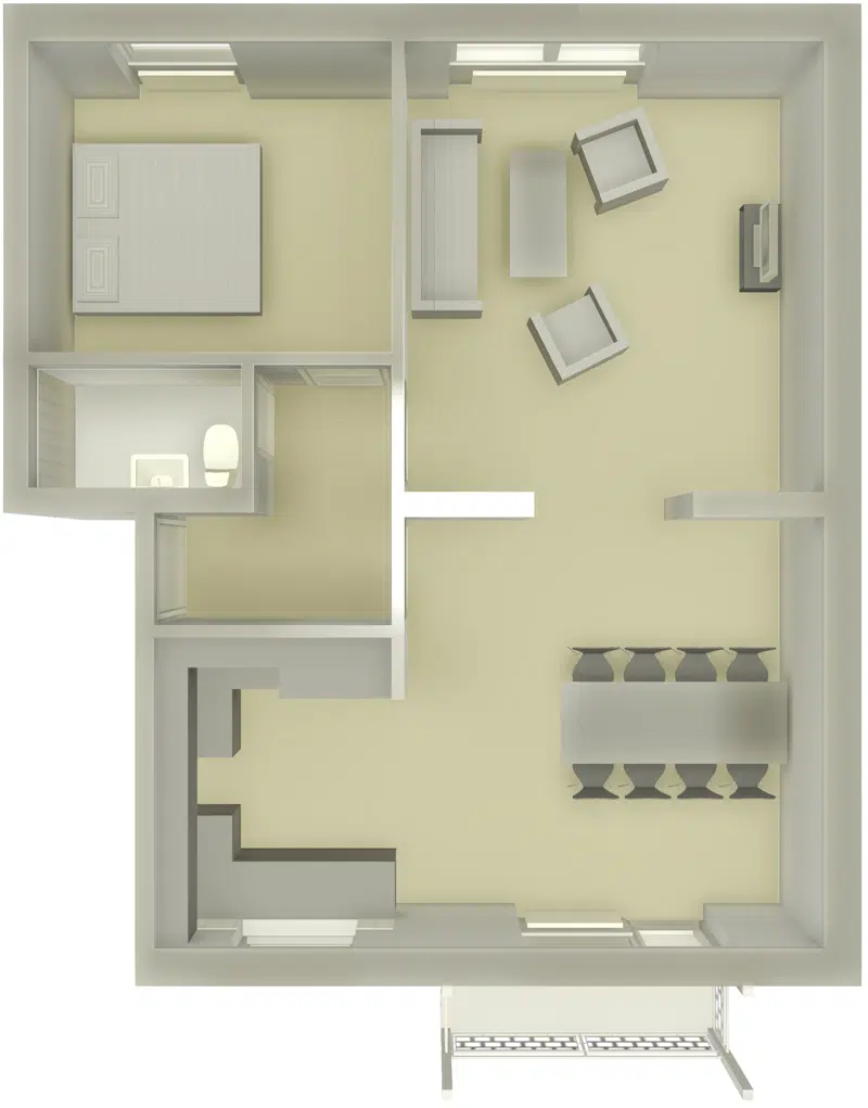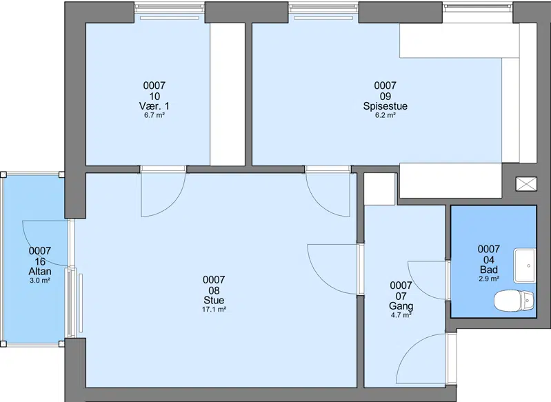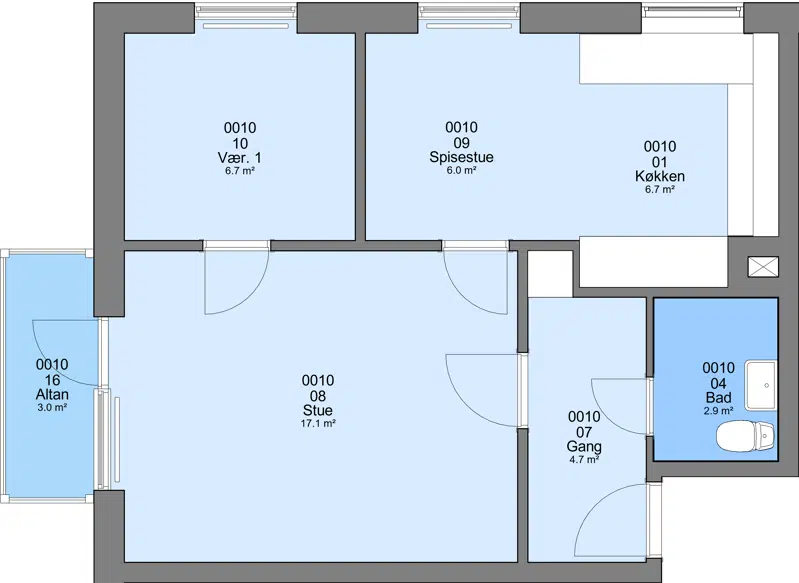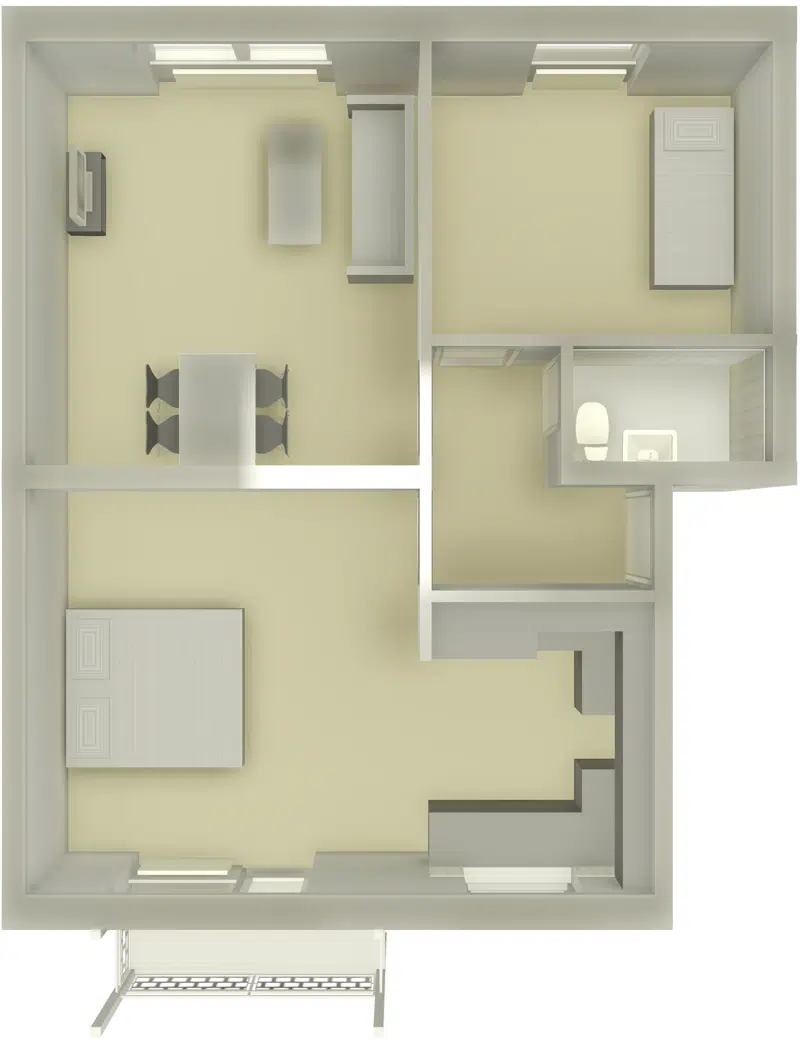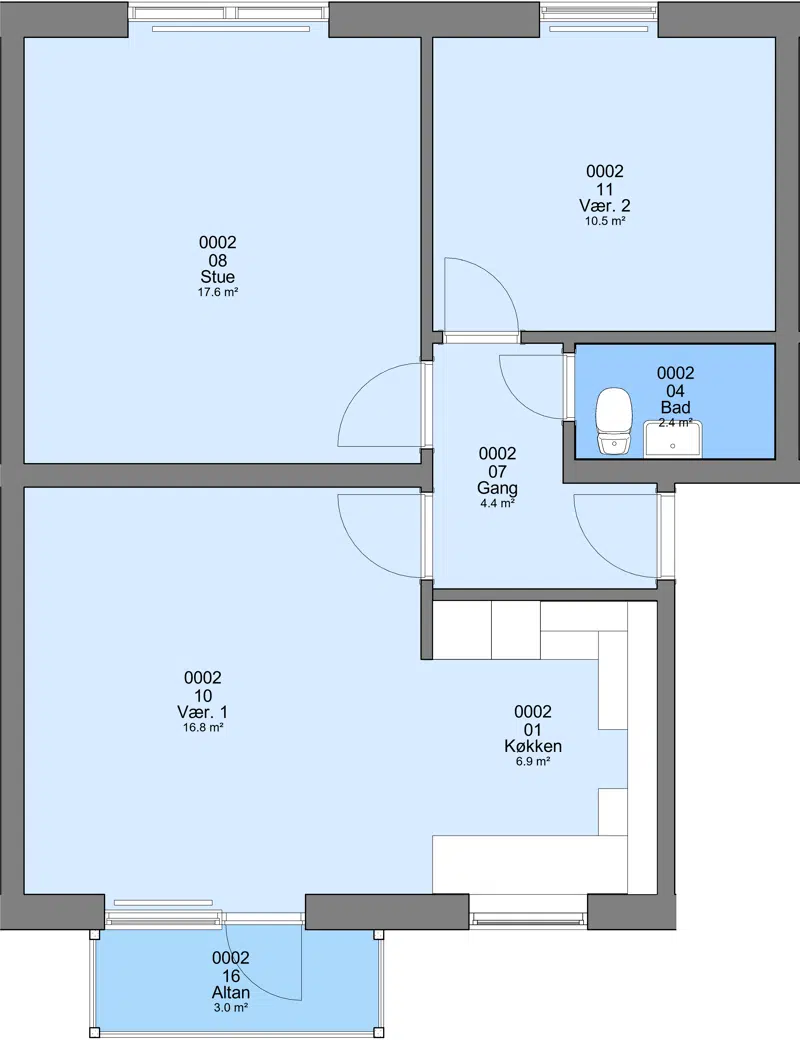 Nogle af boligerne ligger på 1. sal. Der er dørtrin i boligerne og der kan forekomme niveauforskelle ved indgangen.