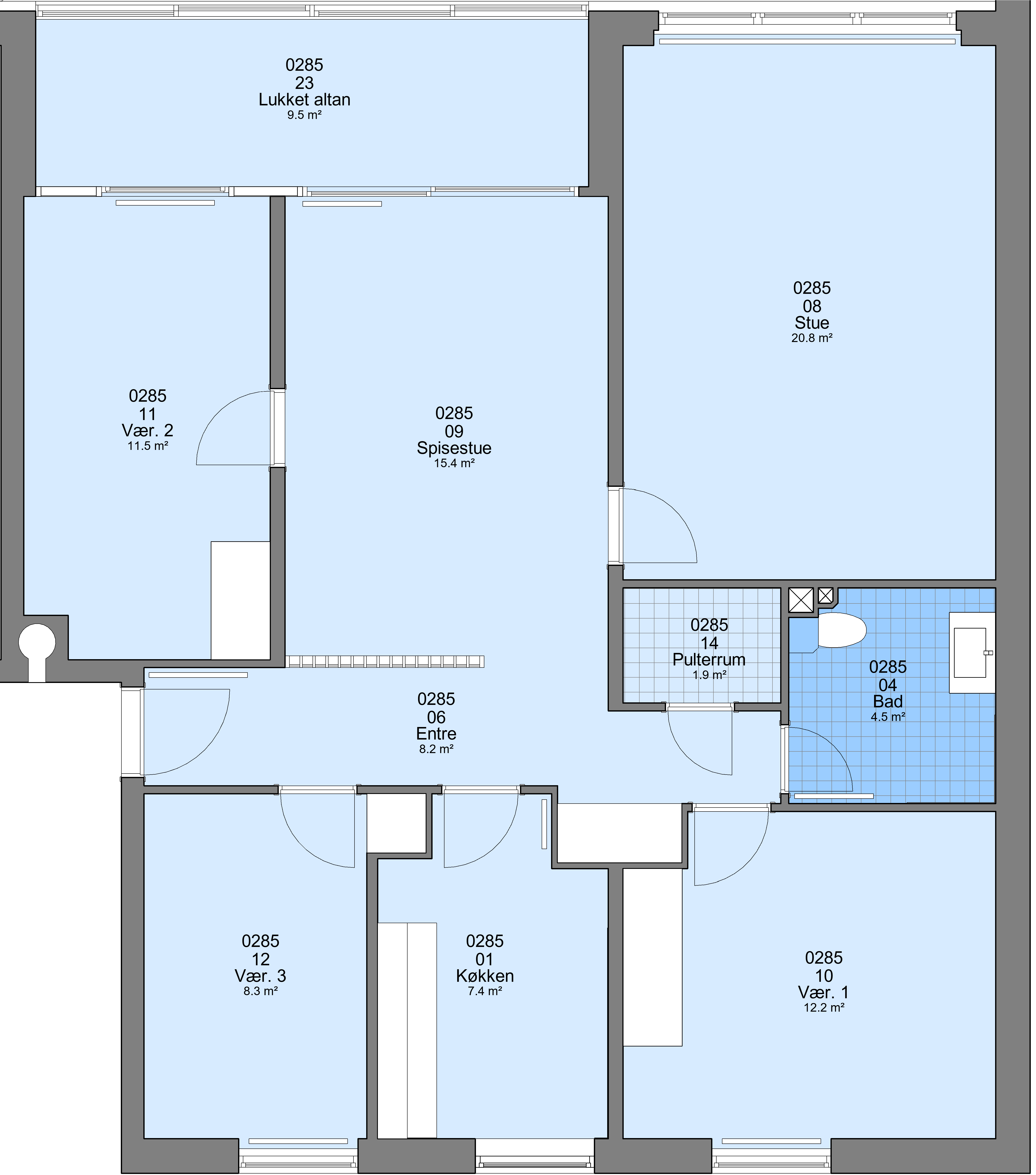 Der er et kælderrum til alle boliger.