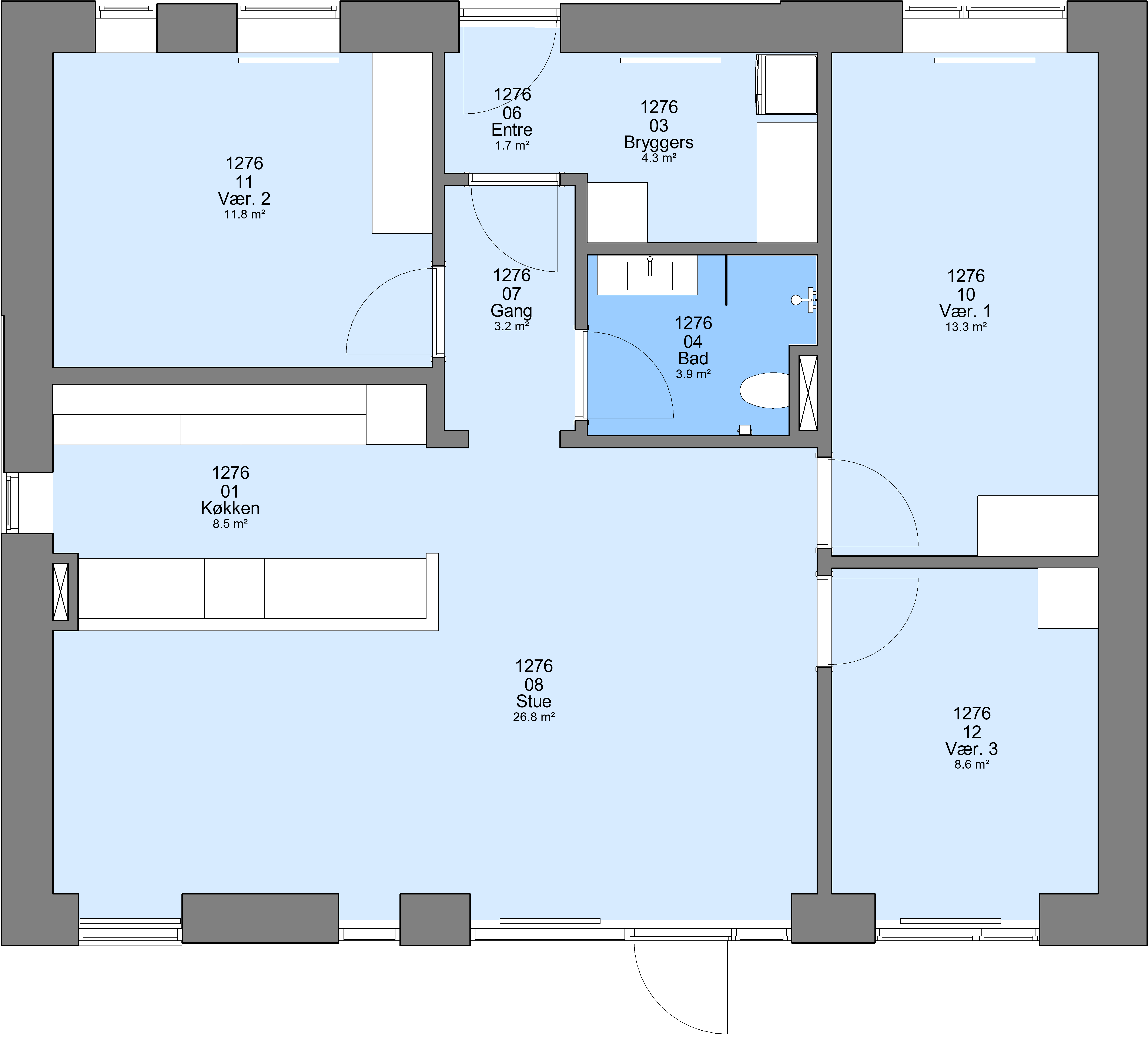 Boligerne med 3 rum er i to plan. Der er 11 stk. 4 rums boliger, som er uden trapper.