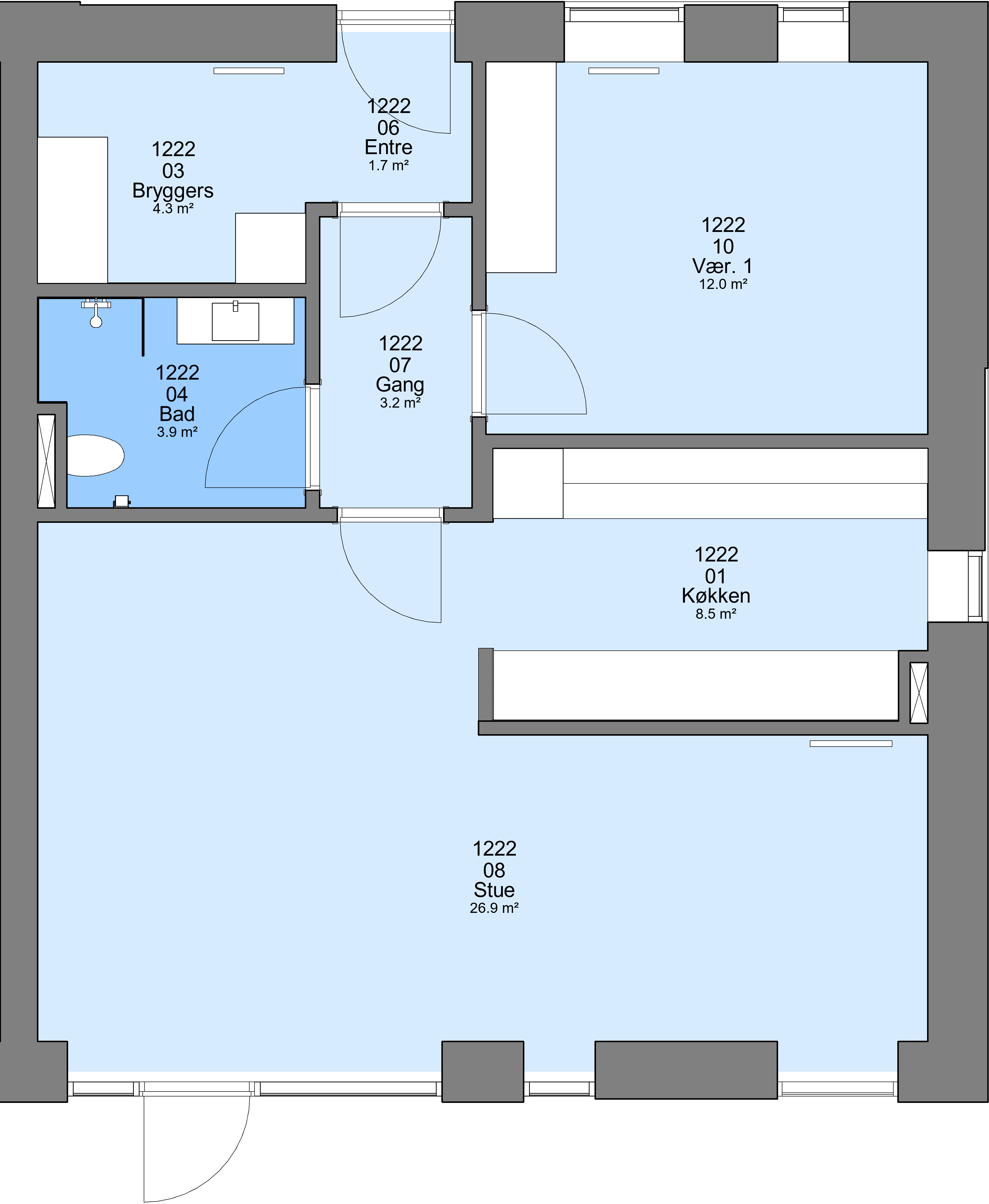 Boligerne med 3 og 4 rum er i to plan. Halvdelen af boligerne med 2 rum, har indgang på 1. sal.