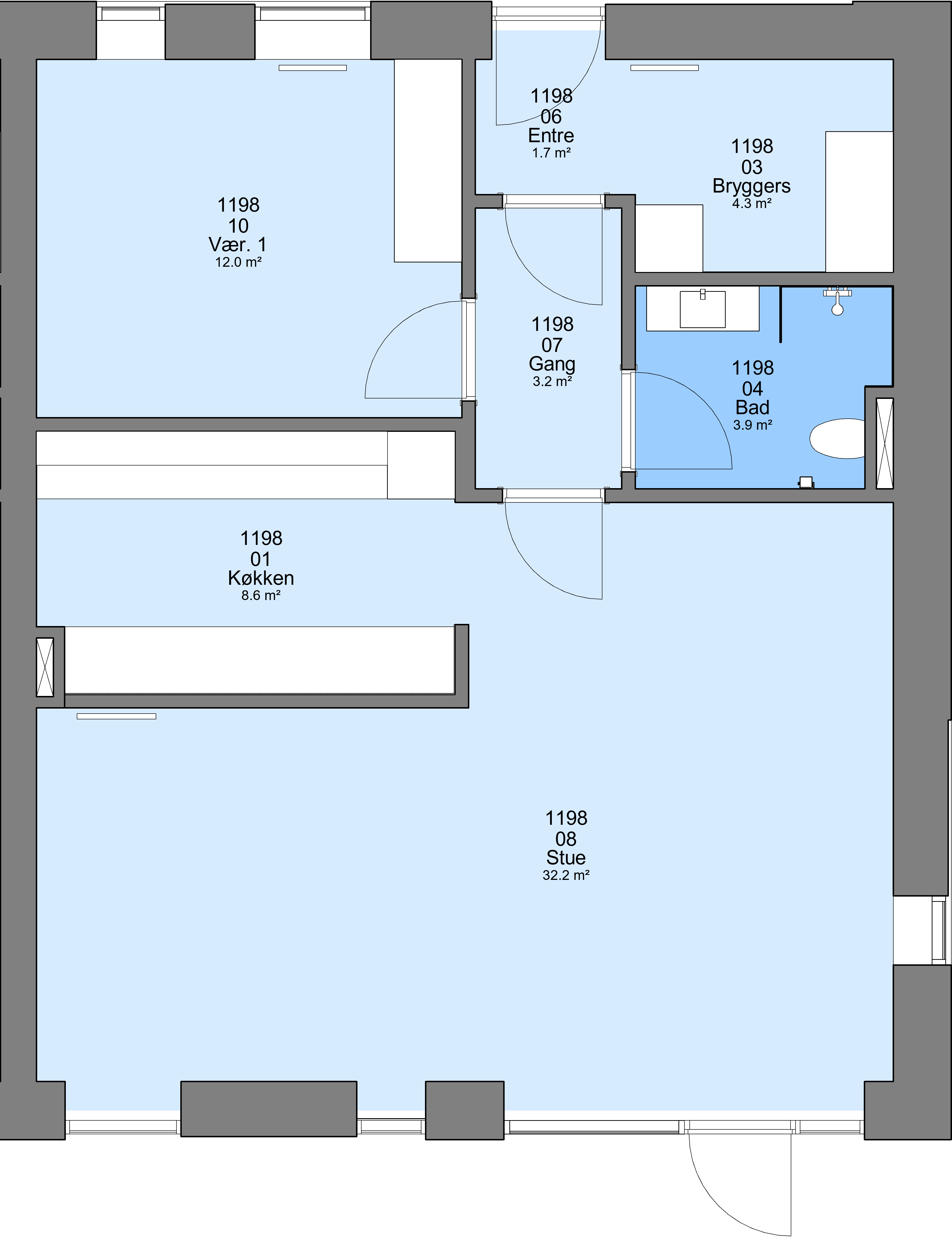 Boligerne med 3 og 4 rum er i to plan. Halvdelen af boligerne med 2 rum, har indgang på 1. sal.
