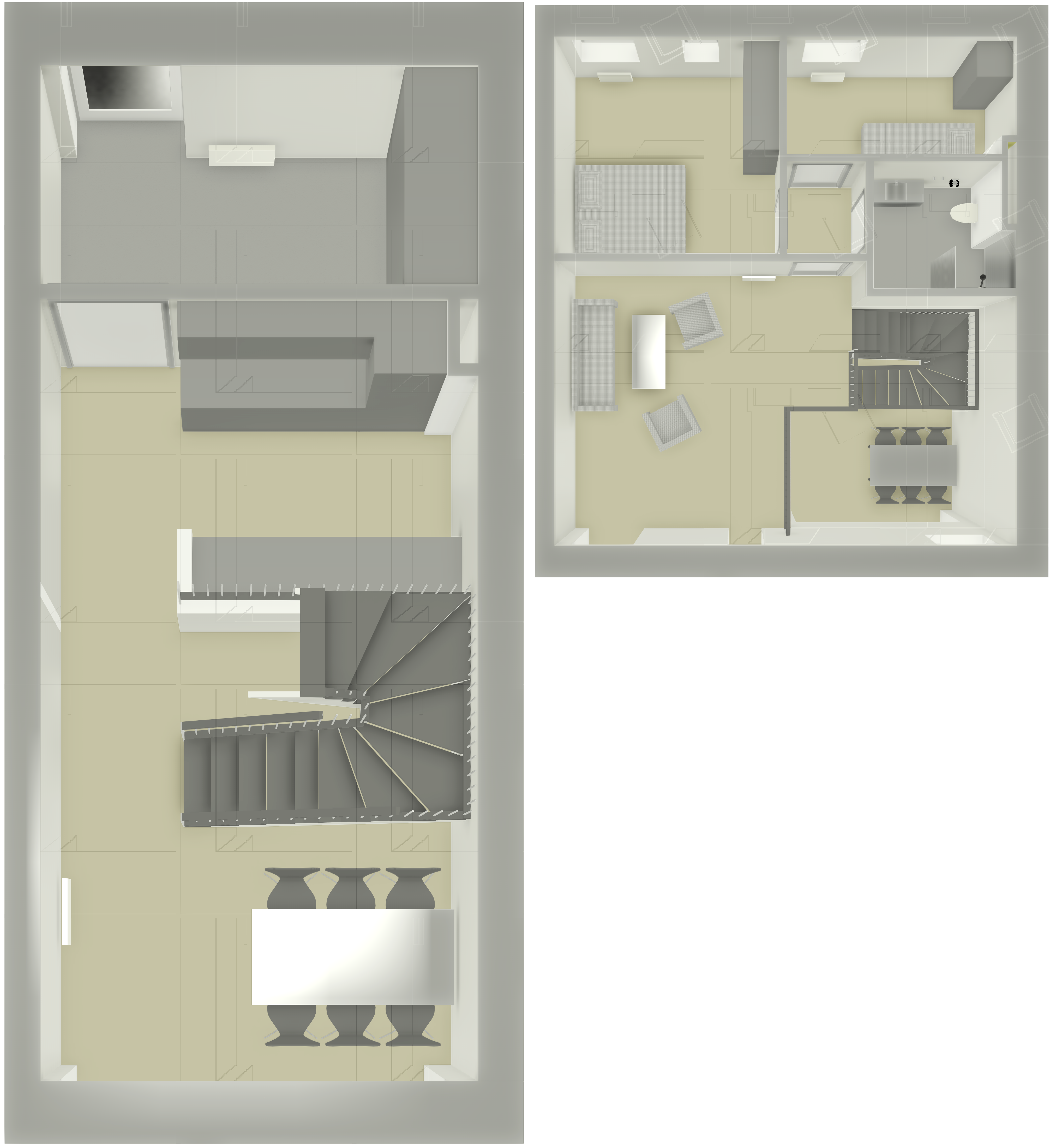 Boligerne med 3 og 4 rum er i to plan. Halvdelen af boligerne med 2 rum, har indgang på 1. sal.
