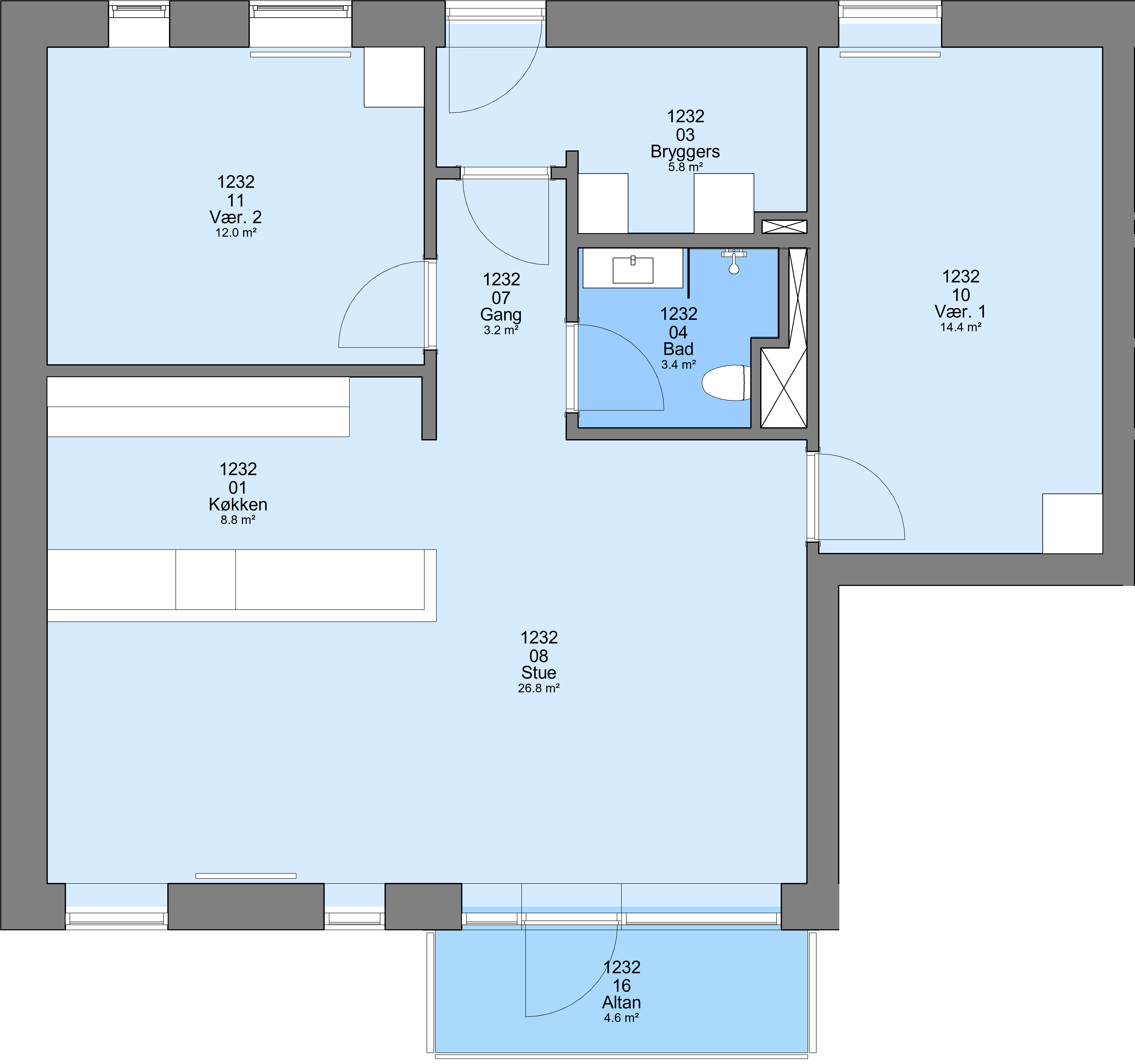 Der er altan til boligerne med indgang på 1. sal. Boligerne med indgang i stueetagen har en terrasse.