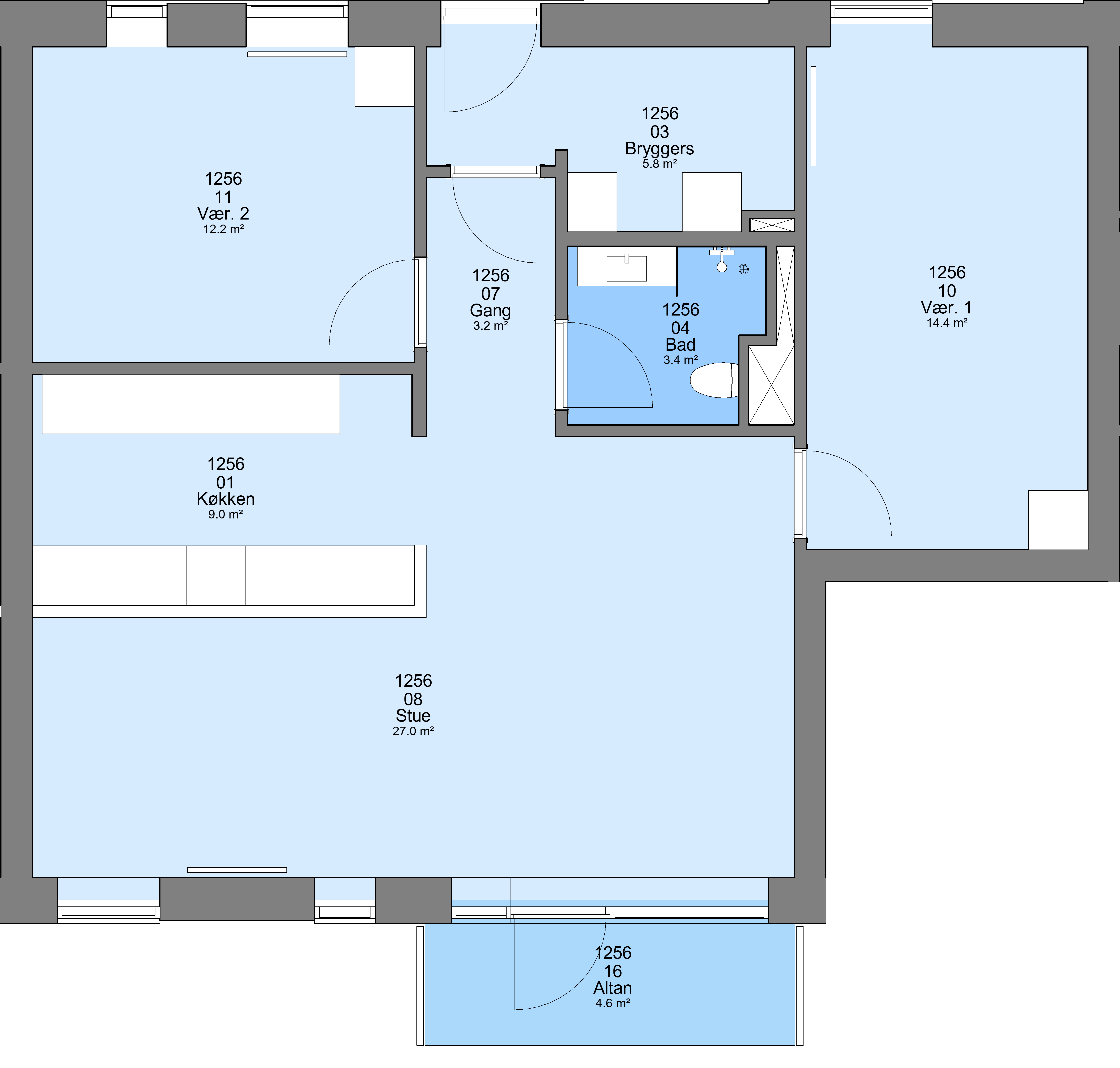 Der er altan til boligerne med indgang på 1. sal. Boligerne med indgang i stueetagen har en terrasse.