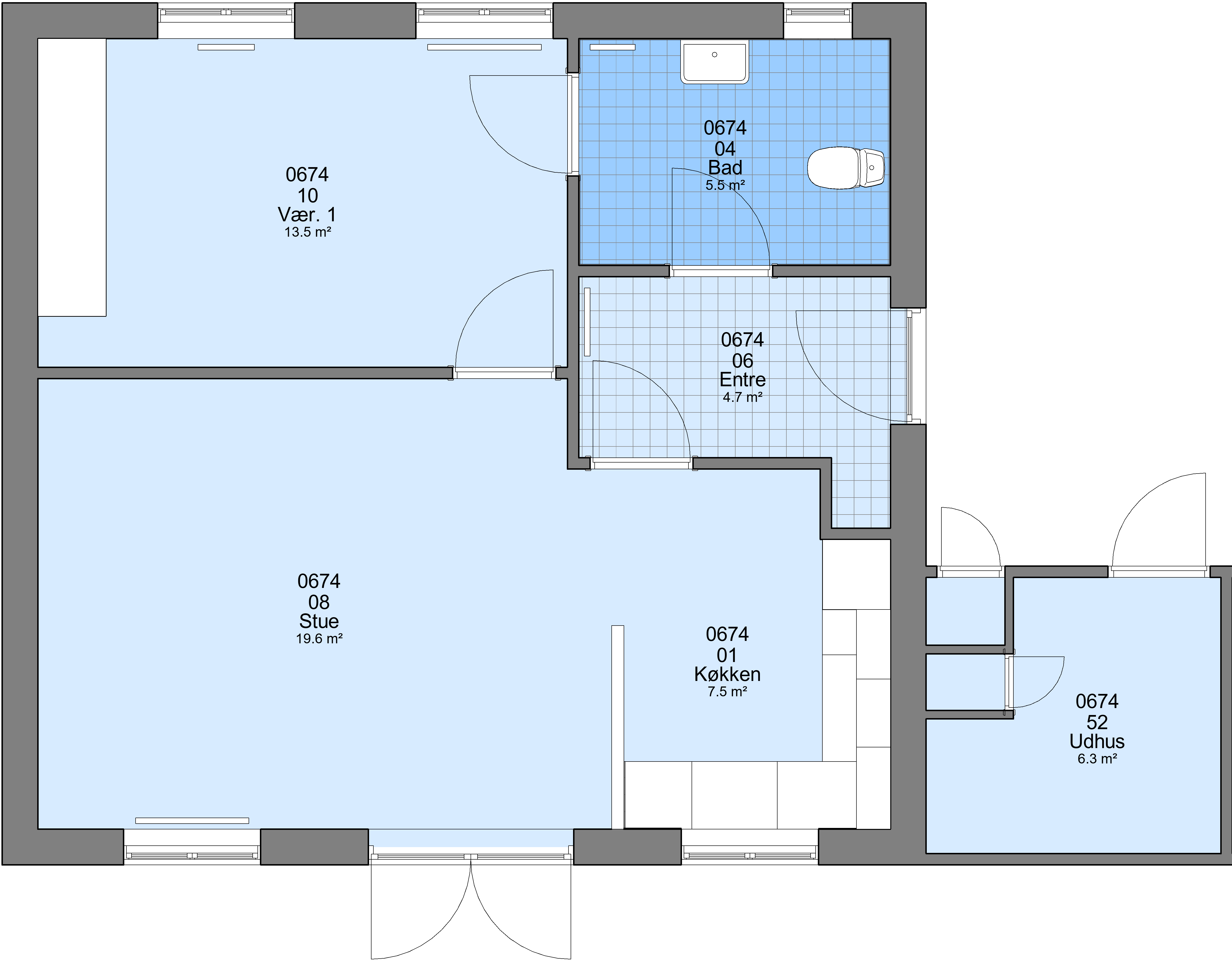 Der er dørtrin i boligerne og der kan forekomme niveauforskelle ved indgangen. På Trine Rahbeks vej og Hovedgaden er der boliger på 1. sal.